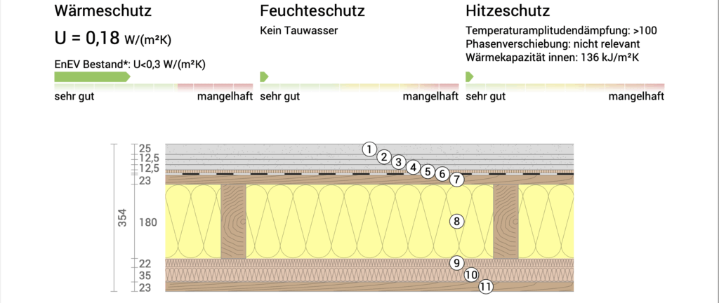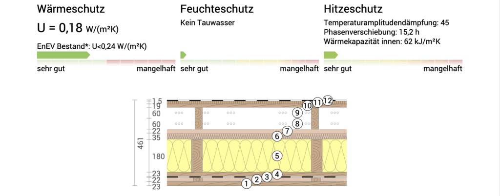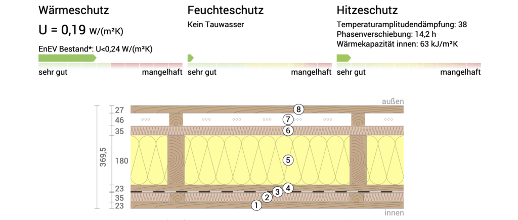 - 180 mm Holzständerwerk mit Hanfstopfwolle ausgedämmt