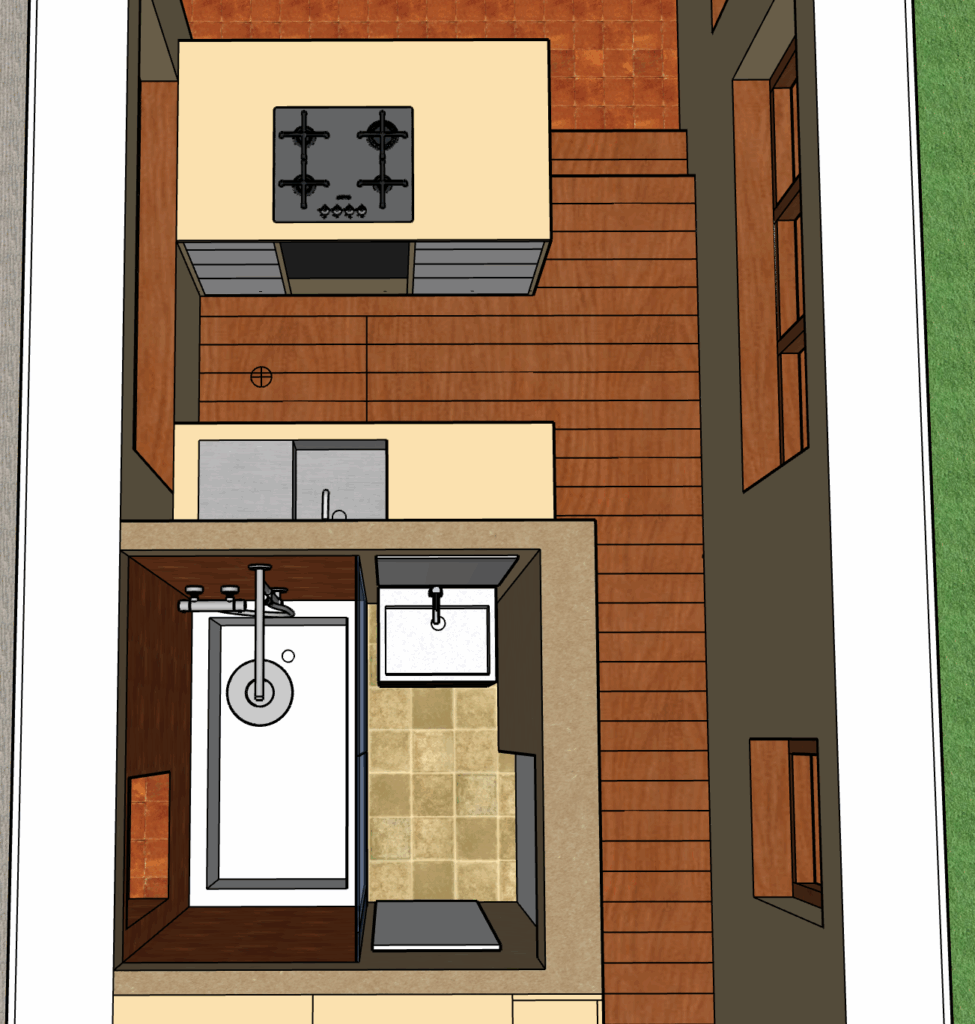 - Der Innenbereich gibt mit seinen zwei Ebenen, einer Raumhöhe bis 2,8 m, den vielen Fenstern und insbesondere auch den natürlichen Materialien ein tolles Raumgefühl mit 27 m² Wohnfläche zum Wohlfühlen